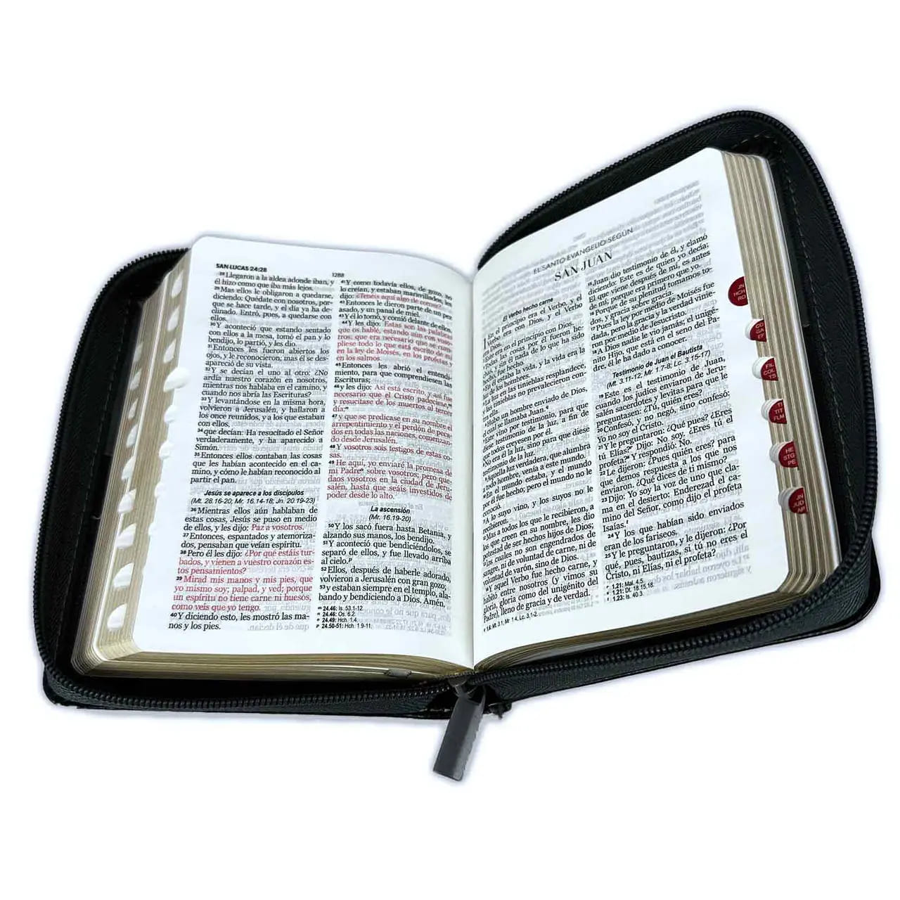 Biblia León de Bolsillo RV1960 con índice y cierre. Tamaño de letra: 8 puntos