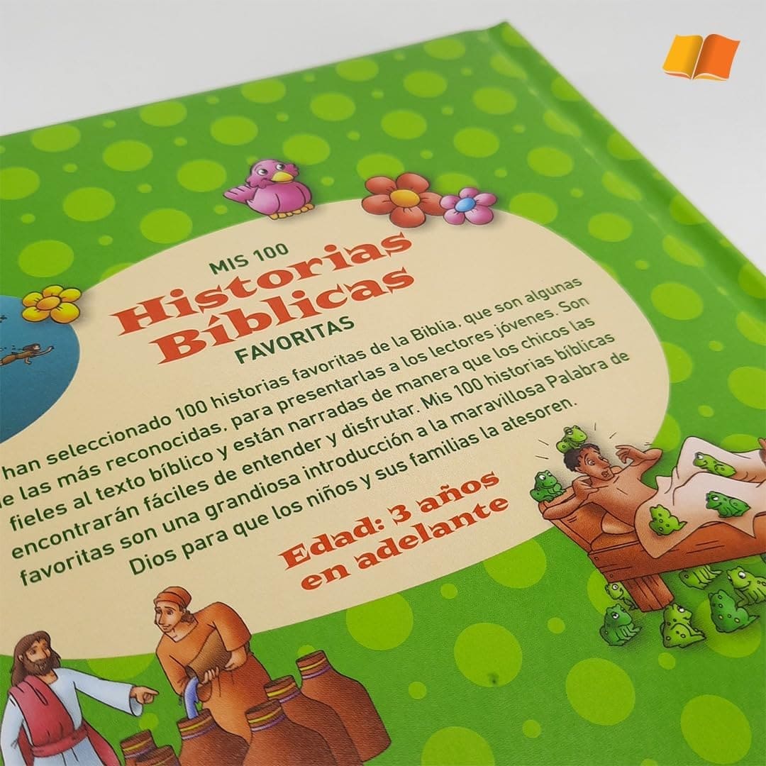 Se han seleccionado 100 historias favoritas de la Biblia. Que son algunas de las más reconocidas, para presentarlas a los lectores jóvenes. Fieles al texto bíblico y narradas de manera que los chicos las encontrarán fáciles de entender y disfrutar. Mis 100 historias bíblicas favoritas son una grandiosa introducción a la maravillosa Palabra de Dios para que los niños y sus familias la atesoren. Con una cubierta acolchada y 300 ilustraciones brillantes, estas historias son recomendadas para edades entre los 5 a 7 años, La lectura de las historias cautivará a sus hijos mientras lee con ellos a la hora de acostarse o en la escuela dominical.