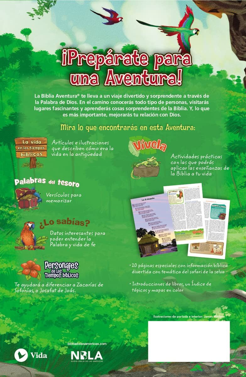 En esta edición revisada la NBLA Biblia Aventura, ahora con el texto bíblico de la NBLA, los niños de 8 a 12 años descubrirán el tesoro de la Palabra de Dios. Llena de grandes aventuras y características emocionantes, la NBLA Biblia Aventura abre un nuevo encuentro con las Escrituras para los niños, especialmente en un momento en el que están tratando de desarrollar sus propias ideas y opiniones independientemente de sus padres. Diseñada para despertar la curiosidad, sus características incluyen: A todo color, con información más interesante sobre la Biblia y lo que significa ser cristiano. La vida en los tiempos bíblicos – ayuda a los niños a entender cómo era la vida en tiempos de la Biblia Personajes de los tiempos bíblicos – ayuda a los lectores a distinguir entre Zacarías y Sofonías, y entre Josafat y Joás Palabras del tesoro – destaca versos bíblicos populares para que los niños los memoricen ¿Lo sabías? – señala muchos de los hechos y cifras interesantes que se encuentran en la Biblia ¡Vívela! – sugiere actividades, como representar una historia o dibujar una caricatura para reforzar las lecciones bíblicas Introducciones a los libros con datos útiles sobre cada libro de la Biblia (quién lo escribió, dónde tuvo lugar y por qué se escribió) Índice de tópicos Texto completo de la Nueva Biblia de las Américas (NBLA) Las ilustraciones coloridas, entre muchas actividades más, hacen de esta Biblia un libro único para los que inician en la hermosa aventura de fe en Jesús.
