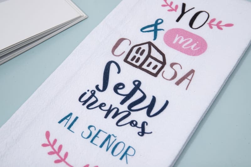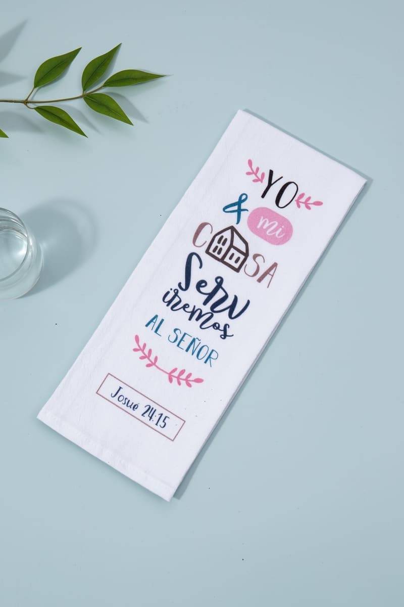Toalla servilleta para cocina hecha de algodón con versículo bíblico a todo color.